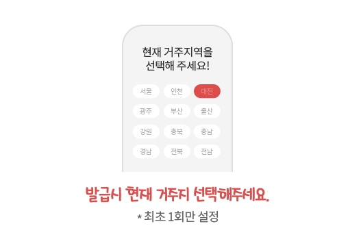 ② 발급 시 현재 거주지 선택(최초 1회만 설정)